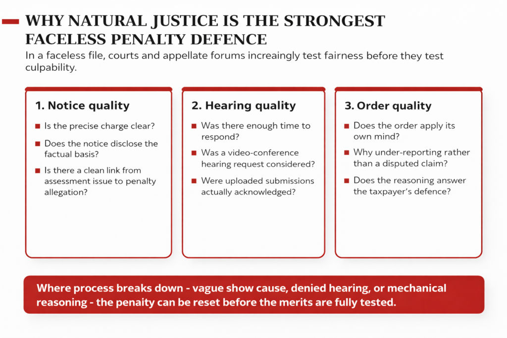 Faceless penalty disputes are increasingly being won not by denying every addition, but by showing that digitised tax enforcement still failed the oldest procedural test: a fair hearing.